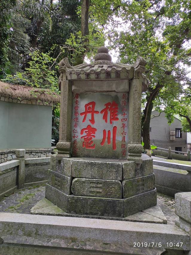 丹灶用24条青石按道家阴阳八卦图砌成。丹灶青石基座上分别刻着乾、坤、震、巽、坎、离、艮、兑的八卦符号。丹灶正面刻有“稚川丹灶”四个大字,是苏东坡所题。