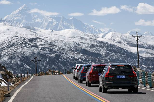 海拔一路攀升,多数路段基于4000多米海拔起,在这里,挂金帆、撒龙达,去祈福,去许愿。我站在雪山之巅,此刻真的就像一只翱翔天际的鹰,盘旋在天际之上,俯视着万千世界。而这种路段最考验汽车的性能,XC60搭载的智能四驱系统,可以轻松在完成任何一个指令,而且空气悬挂+4C底盘,最大限度的减少车身的震动,让我在一路的行驶中可以完美驾驭。而City Safety城市安全系统让我一路省心,尤其遇到“牦牛警察”这种可以随意躺卧在路边的可爱生灵,能够在第一时间辅助刹车,极大的增强车辆行驶的安全性,这也是对每一个生命应有的尊重和呵护。
