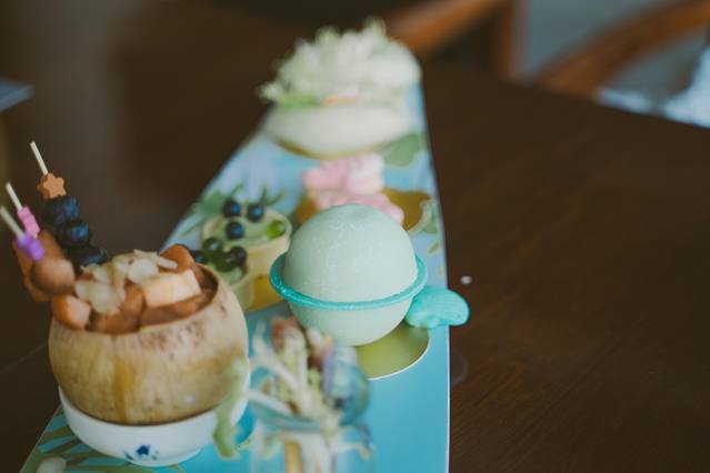 点一份网红下午茶 一个帆船造型的甜品上每一个都是不一样的形状