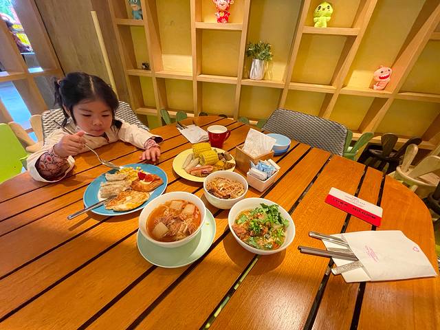 今天去餐厅的时候正好遇到大餐厅人多排队,服务员小姐姐就问我们要不要带孩子去儿童餐厅,孩子一听连忙答应🤣我们只好都跟着去了