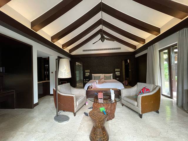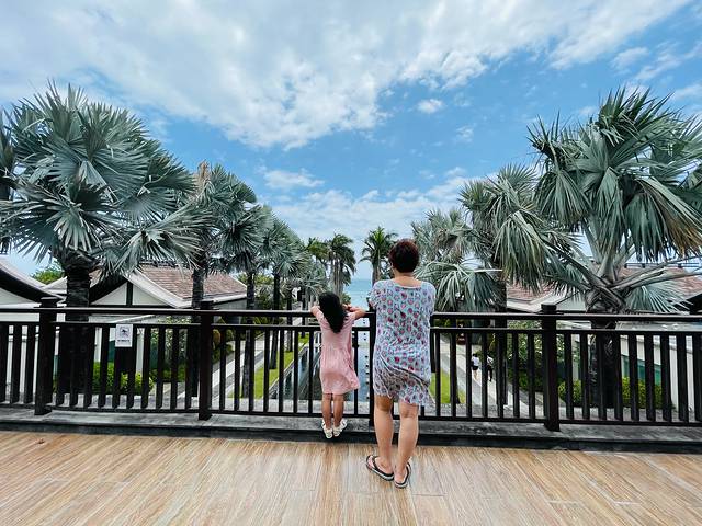 所以大家在办理入住的时候可以要一个高楼层,一开始前台小姐姐给我们办理的时候,是准备给3楼的。还好我机智问了一下在几层,因为房前椰子树🌴很多,感觉低一点的楼层应该会被树挡住视线,所以我们说了一下,要个高些的楼层,带着小朋友,最好可以离大堂近一点😉,后来小姐姐给安排了5楼,也是靠近大堂的。