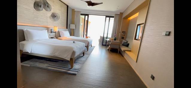 房间还挺大的,我们定的豪华海景房,房间还不错,空间挺大的,阳台也大,视野也好,满眼的大海,阳台上还有个大沙发,晚上可以躺着数星星了吧✨