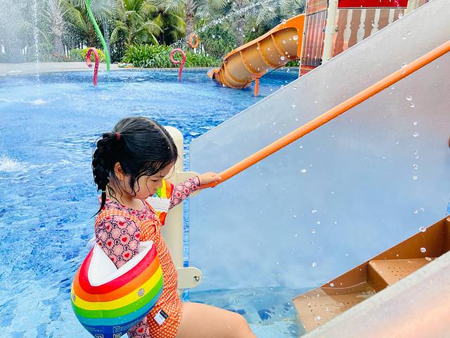 吃饱喝足,就开始玩耍啦,海滩边逛逛,泳池里带孩子玩一玩,我们去的是礁瑚泳池,儿童泳池没有开放。礁瑚泳池下午3点有泳池泡泡派对,4点结束。4点的时候会有工作人员来逐一询问小朋友要不要去坐小火车。