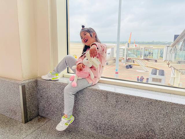 这开心的样子,就是下了飞机,到达海口啦!🧚🏻♀️