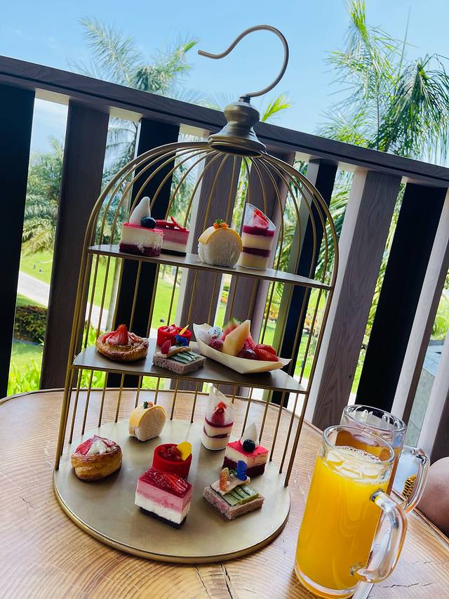 排队等候的几分钟时间会有小姐姐主动上来跟你介绍酒店概况,一楼的儿童俱乐部餐厅,户外的泳池,15楼270°的海景无边泳池和餐厅等等……下午茶也在15楼。