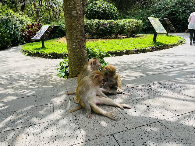 小姐姐告诉我们,这小猴子🐒是在捡大猴子身上的盐巴吃,得有比较亲近的关系的才会给你这样在它身上找盐巴吃。