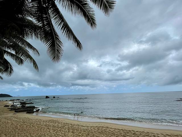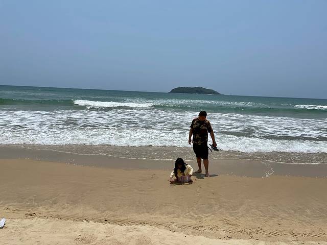 被刚刚进入大堂时的美景吸引,我们收拾好想着带孩子去海边玩一玩,拍拍照,来到海边真的有点失望呢😕沙滩上的小树枝碎掉的贝壳渣,还有一些其他小垃圾还挺多,沙质比较差的,孩子看了都不愿意下脚。他爸就背着她走了走。沙滩不大,海浪🌊却很大!本来我俩就不太舒服,一吹感觉头更疼😩赶紧回房间睡了一觉!