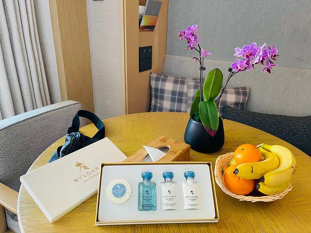 11点钟的样子到了酒店,因为离昨晚住的很近。很快就到啦,门口有非常绅士的迎宾👨🏻帮你开车门,提行李🧳。花了钱的地方服务也很友好哒。更棒的是我们到的早也能直接入住啦……😁