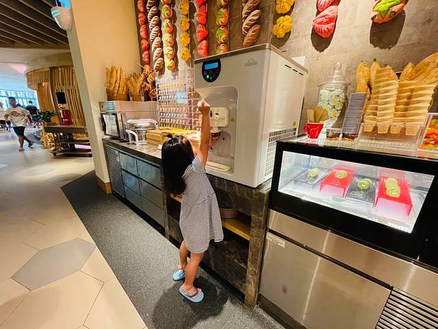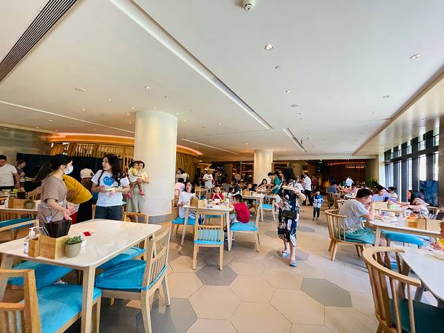 仁恒的早餐分儿童餐厅和大餐厅,儿童餐厅自然就是儿童设施会比较多,色彩也更丰富一些,包括餐厅的环创设计都会更可爱一些。儿童餐厅的早餐相对要少一些,不过是可以去大餐厅取的。两个餐厅也靠在一起。