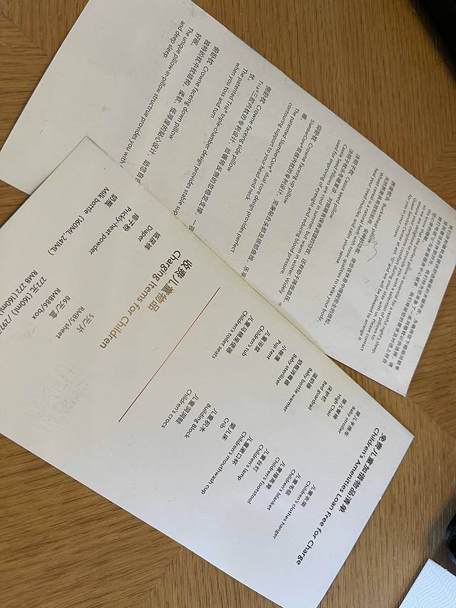 房间床头还贴心的放了消毒湿巾,还有两张可以免费使用的产品明细单,有各种功效的枕头可根据需要进行选择,另外还有关于孩子的各种贴心用品:床围,积木,小帐篷⛺,婴儿推车,还有婴儿床😌真的很贴心了,我们根据孩子自己意愿选择了小帐篷积木,还有床围和推车。冰箱里的饮料也会每天补充一次,免费哒🆓