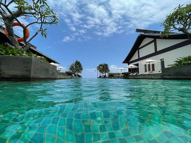 来到君澜第一印象就是从大堂望出去满眼的风景,无边泳池连接着大海,真美!