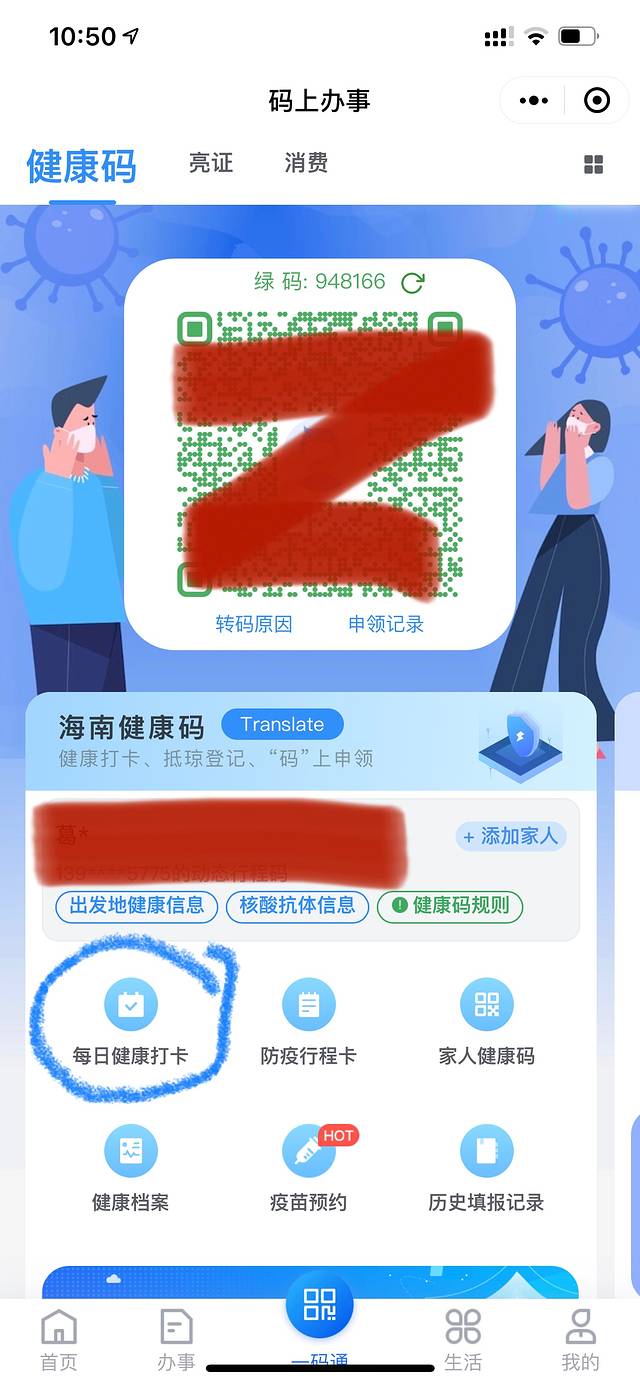 这边注意一下,下了飞机✈️,现在的特殊时期,需要扫码办理海南健康码,二维码在出口处就能看见,扫码填写完信息后,二维码显示为灰色,需要再点击一下二维码下方的"每日健康打卡",这样健康码就显示为绿色了。然后持自己身份证就能出去取行李🧳啦😊