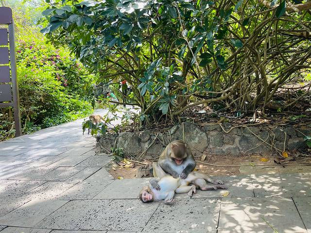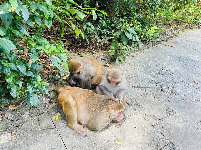 从缆车🚡上下来就到猴岛入口了,猴群遍布,工作人员也会不断的提醒大家不要打开背包拿任何物品出来吃,不然会被猴子🐒抢的,很危险的。猴子会打人🤣而且速度飞快。只要你不打开背包🎒就没事。