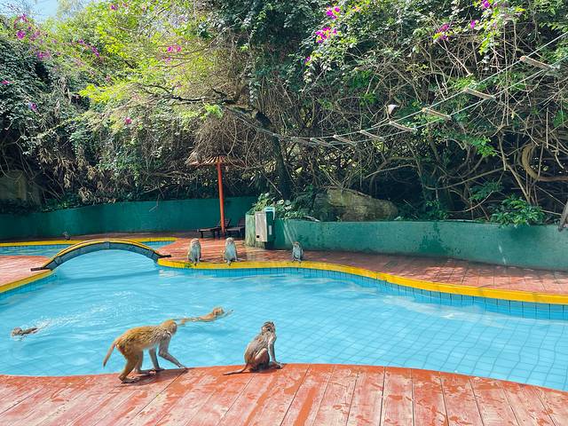 这是它们的度假圣地!也是在猴群中有威望的才能来享受。看它们在泳池里游泳真的别说多有趣了😄
