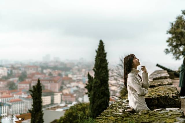 作为 里斯本 最古老的建筑之一,几个世纪以来,圣若热城堡一直都高耸于这个城市之巅。始建于11世纪的古堡一直主要用于防御工事抵御外侵,而如今这里也是 里斯本 登高望远的观景台之一,不仅可以将整个老城尽收眼底,还可以欣赏到宽阔的特茹河,如果天空情况的话,远处的贝伦区也可以清晰可见。只不过今天的坏天气,让整个 里斯本 都沉浸在阴沉沉的氛围里,远处的大桥也因为雨雾而若隐若现,突然让我想起了几个月前在 旧金山 看到的 金门 大桥,同样是云雾缭绕,还真有些相似呢。