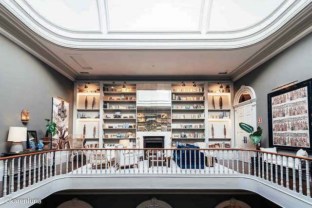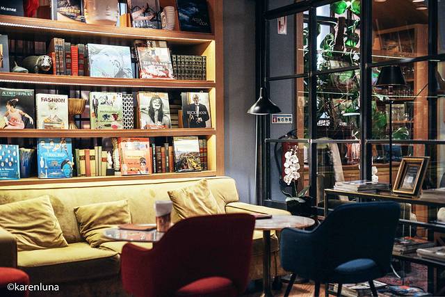 一定不要错过的便是顶层的图书馆兼休息室了。午后,阳光从天窗洒向屋里,自然光的温和让这里看上去非常放松亲切。从书架中选一本藏书,在老式的行李箱旁坐下,再来一杯welcome drink,是午后不可错过的闲暇时光。