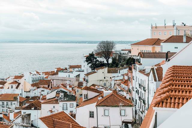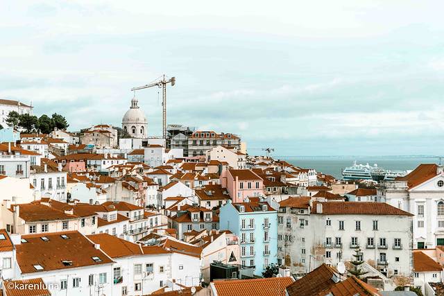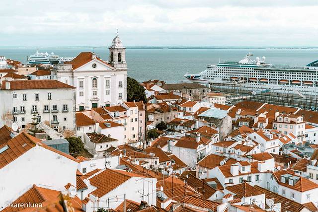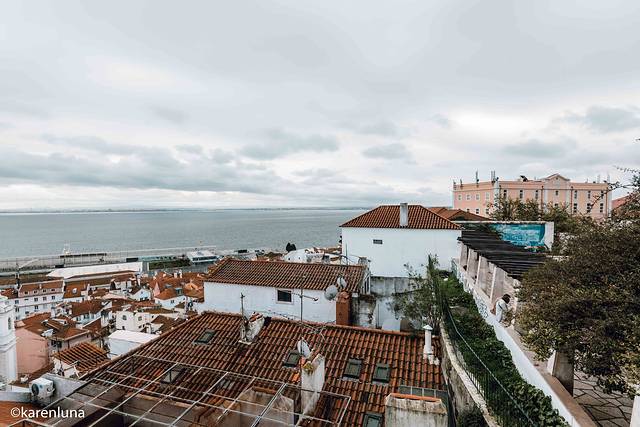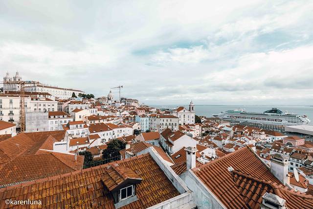 站在观景台边,感受着微微的海风轻抚着面庞,看着半山腰上的古老建筑、俯瞰脚下的阿尔法玛红屋顶群和遥看远处塔古斯河的入 海口 ,即使阴雨也丝毫掩盖不住这里的美丽。