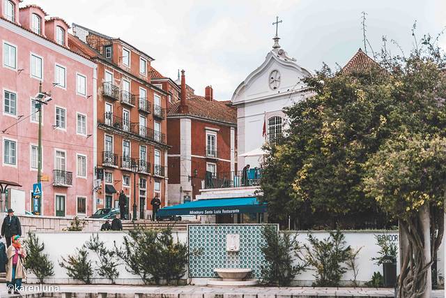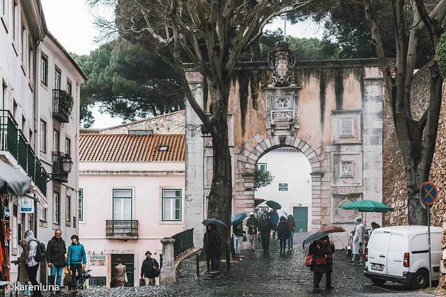 既然今天主要在老城区里溜达,那最不能错过的就是散落在老城区里的观景平台啦。因为 里斯本 整个城市的地域特色,各种大大小小风格不同海拔不同的观景台不下十个,出行前还特意做足了功课想把这些观景台都一一打卡。但没想到绵绵的细雨完全没有停的意思,因病而虚弱得身体也让我俩行动缓慢,完全打乱了原有得计划,所以最终只能筛选一些比较经典的、景色更美的观景台重点打卡。而观景台就是众多观景 台中 海拔最低也是最受人欢迎的观景台啦。