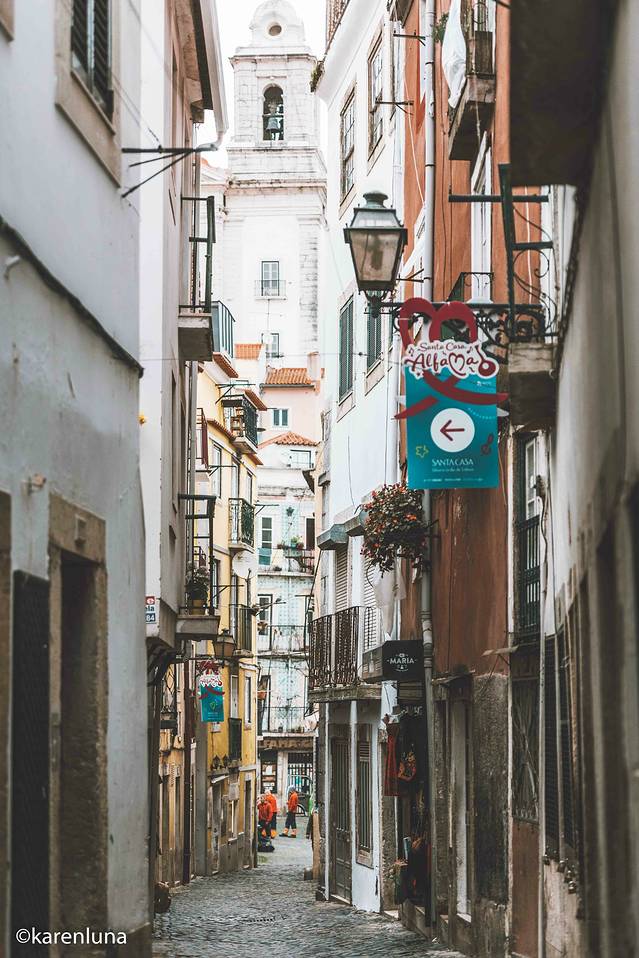 在观景台上欣赏了半天错落有致的红色屋顶们,真是超级想走进其中,亲身感受一下最原始的古老街区到底又多特别,于是沿着陡峭的长楼梯一直下坡前往阿尔法玛区。