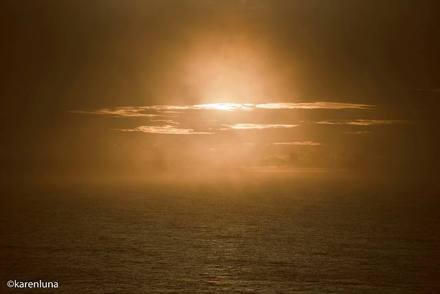 然而天公不作美,本以为忽晴忽阴的天空能在日落的时候给我个惊喜,结果等来的却是继续的乌云迷雾,即使看到了太阳,也只是一个光晕而已。不过不同的天气有着不同的美,看着远处海岸线被常年的海风吹成的礁石云雾缭绕若隐若现,也是一种享受呢。
