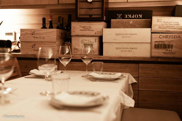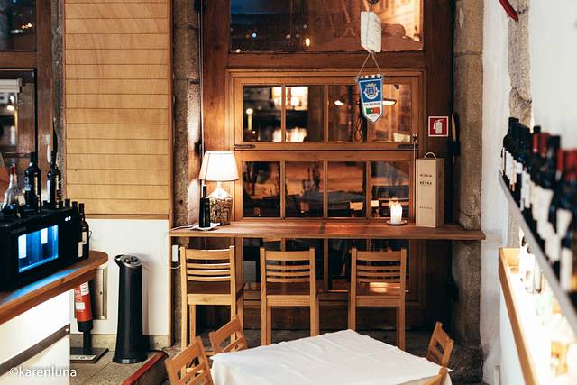 餐厅门口比较低调,从火车站旁的主路上看只有一个挂在门上的小牌子,和一条通往地下室的小路。说是地下室其实并不是,因为 辛特拉 是山城的缘故,街道本身就位于整栋建筑的2-3层,甚至更高,所以即使从正门进入向楼下走,也会发现原来窗外还是可以看到美丽的风景的。