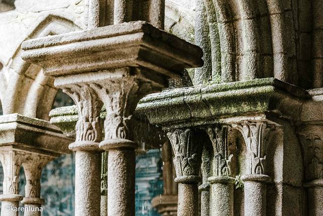 边享受着美食,边跟妈妈看着今天拍的好看的照片,没想到时间过得飞快,离开餐厅的时候已经到了日落时分。雨一直下,沿着回酒店的方向慢慢走着。途中碰巧遇到白天路过的 里斯本 主教堂,没想到这么晚了还开着门,于是决定走进其中,看看这座 里斯本 最重要的教堂到底长什么样。