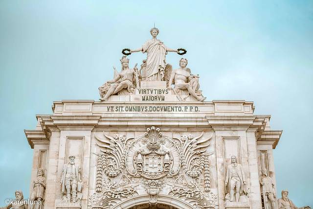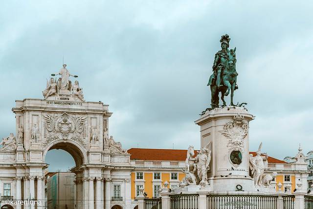 从酒店出发,想着一直向南沿着海岸线前往老城区。而穿过热闹的商业街,最先来到的便是毗邻特茹河的商业广场和那有这个精美雕像的 奥古斯塔 街凯旋门了。