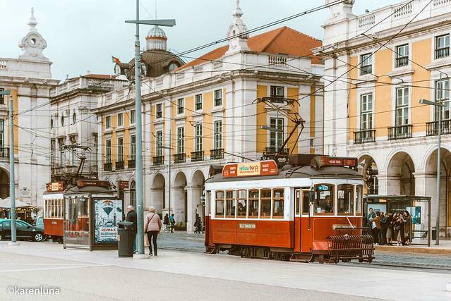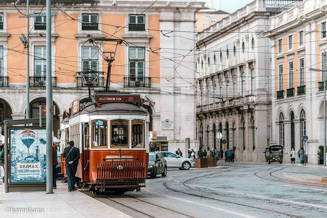 而一条车水马龙的主街道直接穿过商业广场和 奥古斯塔 街凯旋门之间,不管是热闹的白天、还是宁静的夜晚,这叮叮当当的老式电车就从未停歇过,其实这里正是全 里斯本 电车站最密集的地方了。从热闹的现代商业街穿过 奥古斯塔 街凯旋门,看着眼前很有古典韵味的电车在眼前穿梭着,就如同跨过了一道时空门,一下子就把人带到了旧时的年代,这种感觉真的相当奇特了!