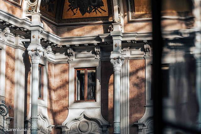 既然管它叫“天鹅厅”,那它最大的特点就是他那屋顶上的图画全部都是天鹅,而且每只都不尽相同,神采奕奕。其实屋内的装潢倒是与之前去过的一些城堡有些相似,都是高高的房梁、宽敞的屋子和各种精美的摆件装饰。但这里最大的特点,就是那精致繁琐的图腾还有遍布各各角落的瓷砖,其实最初建造的时候这里就大量的使用了 西班牙 摩尔人的瓷砖作为墙面的装饰物,不管走到哪里都被满满的摩尔风包围着,跟我之前去 西班牙 的阿尔罕布拉宫在细节上有很多相似之处,有时候甚至恍惚了自己是不是又来到了 西班牙 。