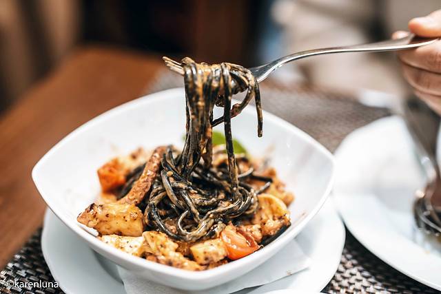 餐厅主要经营海鲜类的美食。按着网上推荐的招牌菜分别点了香煎章鱼腿和扇贝肉蘑菇烩饭,没想到端上来的时候菜量还挺大的。
