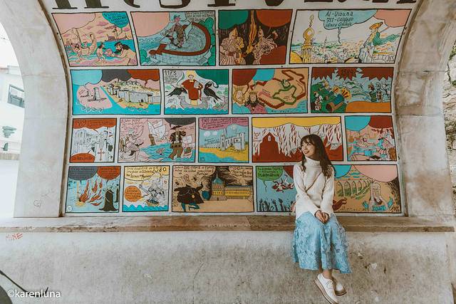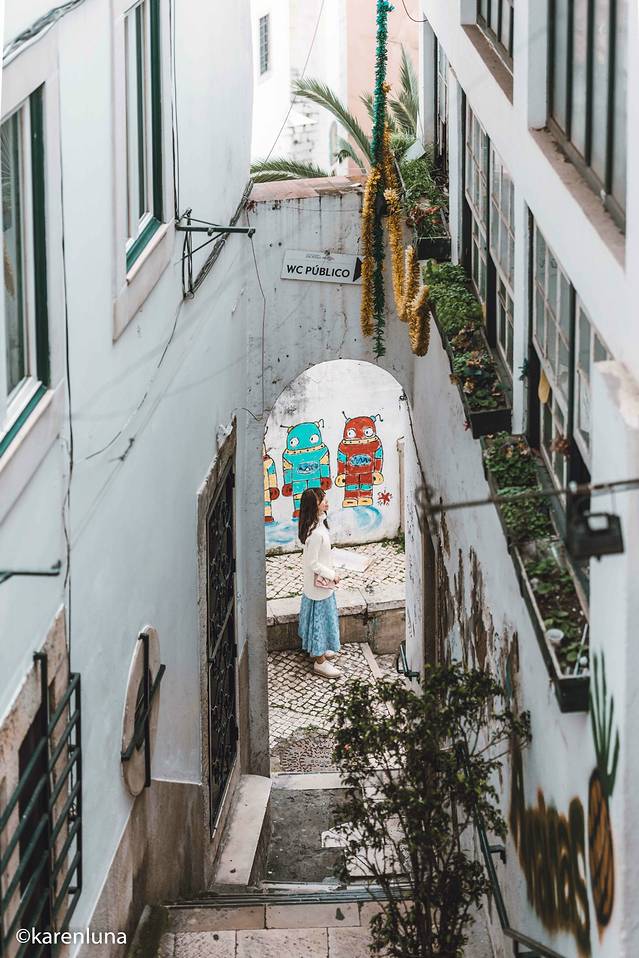 而就在太阳门观景台下通往阿尔法玛老城区的台阶桥洞处有一个小卫生间,特别偶然的机会发现卫生间门口的那一整面桥洞墙被彩绘所覆盖,一幅又一幅卡通行形象的图画描绘了 葡萄牙 着近千年的历史演变,真是超级有意思!其实有时候艺术并不是只存在于高大上的美术馆艺术厅里,有时候也在这样容易被忽略的街头小巷中。