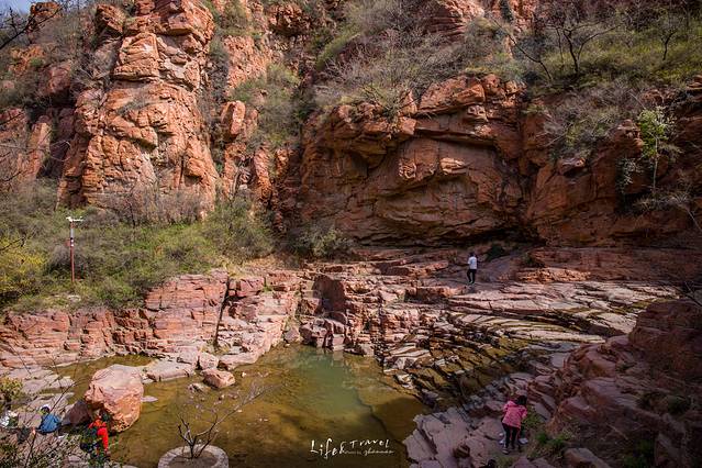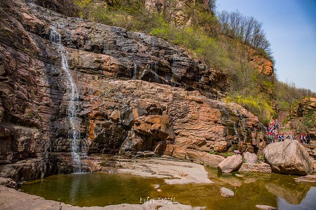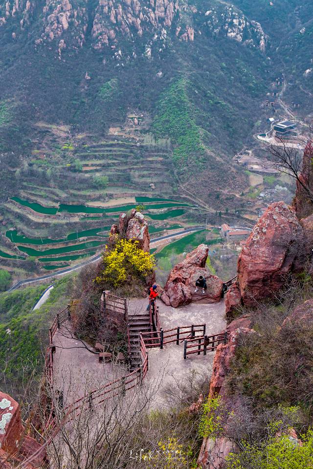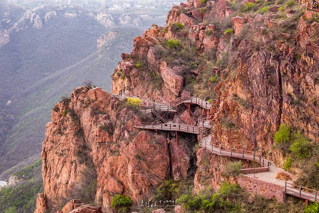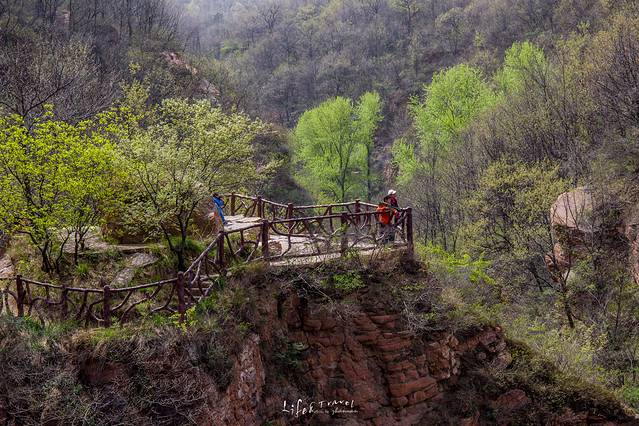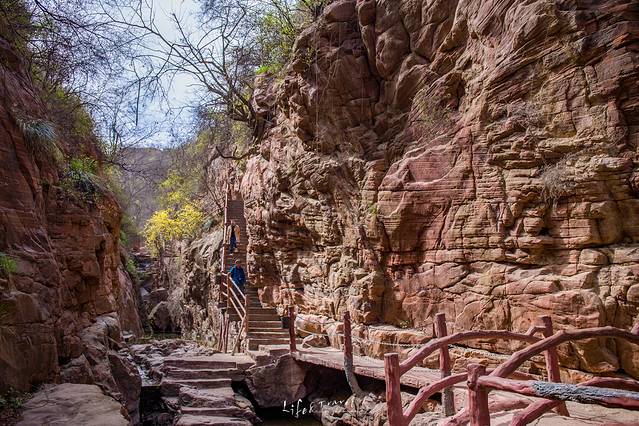 从 郑州 驱车1个小时的时间便到了 新密 西北 处的伏羲山大峡谷,这里的春意似乎还未浓郁,但峡谷间的潺潺流水、栈道红岩一侧的花开,却分明急不可耐地宣告着春天越来越近了。