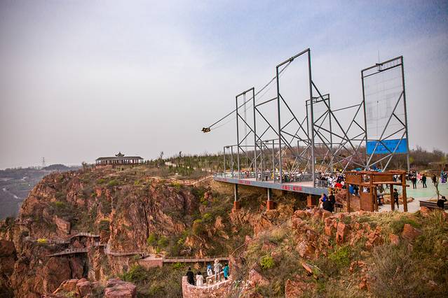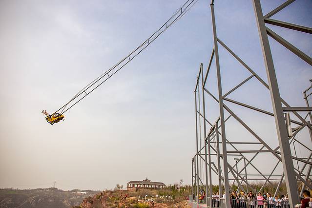 一旁便是悬崖秋千,可以选择8米、20米、22米、双人8米悬崖秋千,乘坐悬崖秋千、吸铁松开、凌空飞翔,感受“命悬一线”的激情挑战。