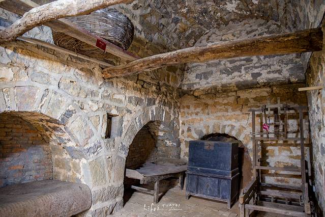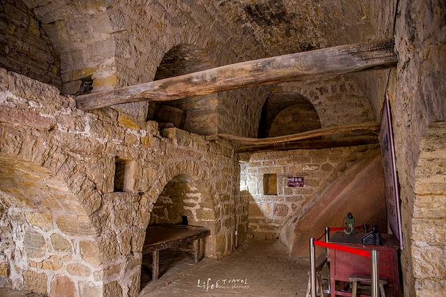 进入这宅子,细细看来才发现的确是有着玄妙之处。石头堆砌而成的石屋,从外立面看来是有上下两层的,进入发现两层之间是用多个一整个的木头隔开,在木头上铺好隔出二层,便是地主家姑娘的闺房,可绣花可睡觉。那时山间很多土匪,姑娘们大都会躲在家中,从二楼的小窗户望着外面解闷。房子有一部分直接与山体相接,便也成了屋子的后墙。