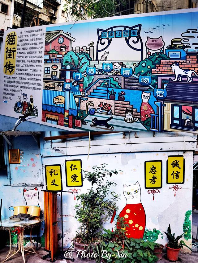 靠近厦门大学,除了地标沙坡尾,有一条“软萌软萌”的顶澳仔猫街,它被称为是“ 厦门最萌的一条街”。这里你会发现满眼都是猫咪元素,抬头看着垂挂的猫咪街旗和灯笼,仿佛一下子进入了二次元的世界!