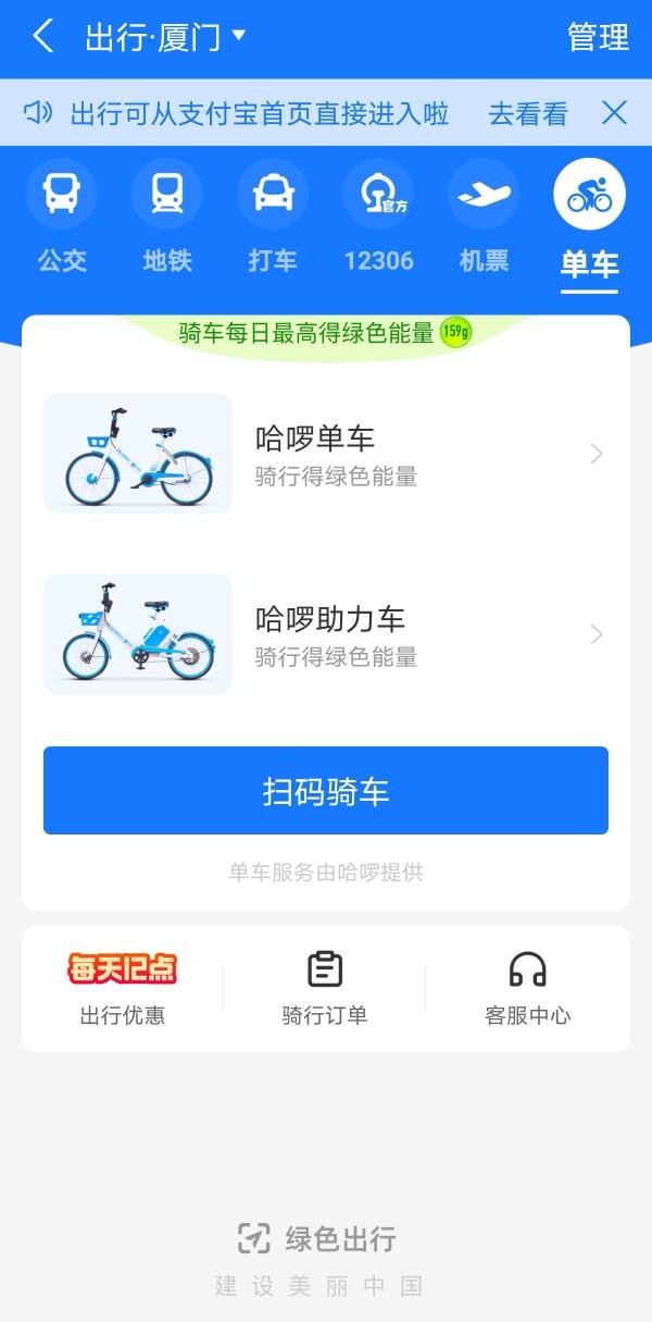支付宝APP—选择出行图标—进入设置
