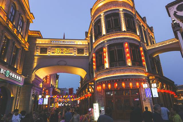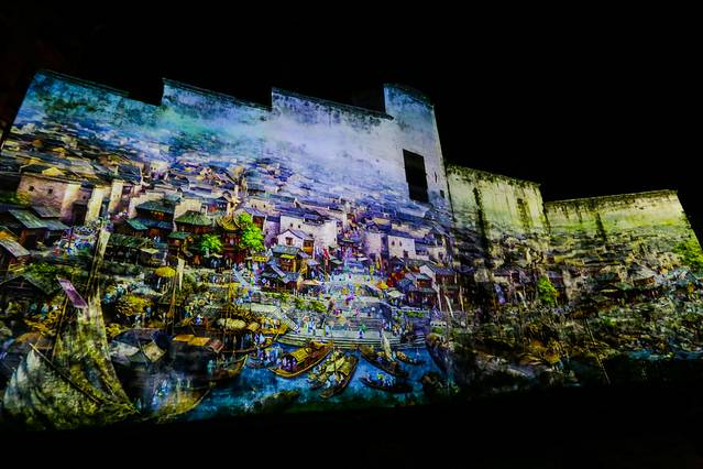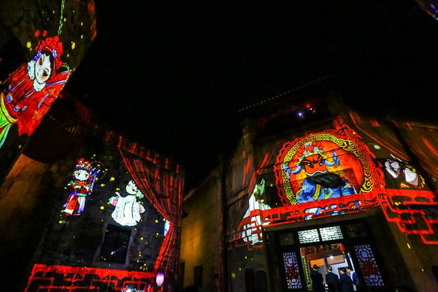 如果跟我们一样住在附近,强烈建议傍晚游览古商城,一来可以看到白天的景象,还可以品尝古商城的地道美食,二来还有最美、且最不可错过的夜景文创灯光秀,可谓是精彩绝伦、美轮美奂
