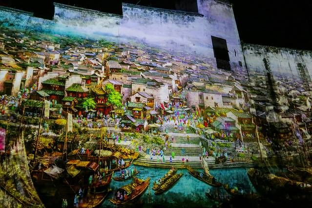 最让我眼前一亮的就是这活化版的《清明上河图》,短短的几分钟时间记录了从清晨到晚上的繁华景象,每一个人物、船舶、甚至是小鱼儿,刻画的都那么惟妙惟肖。