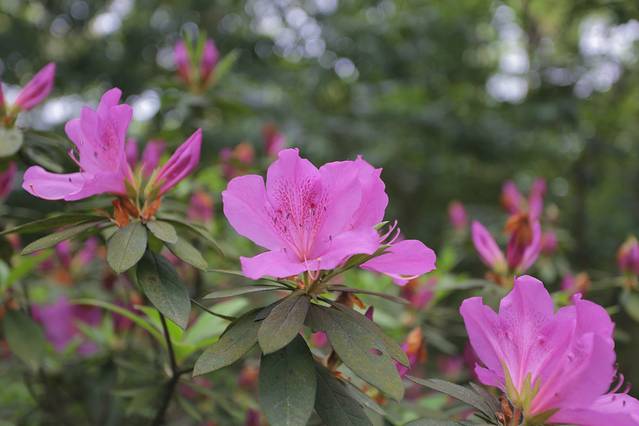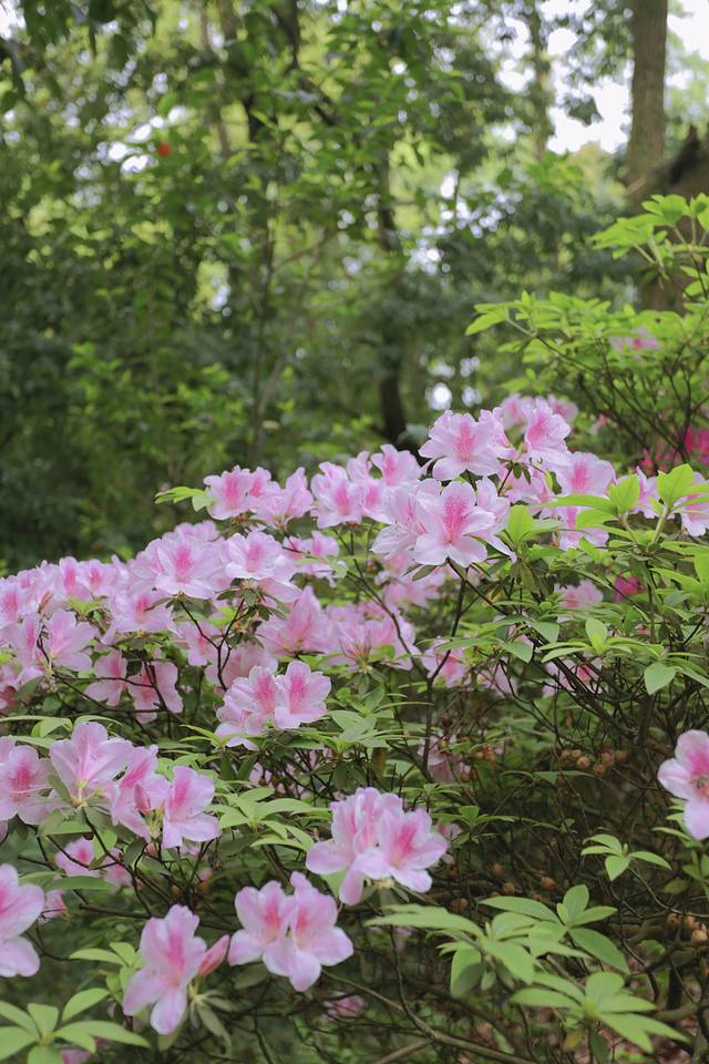 春暖花开草长莺飞,山坡上还有一株株野杜鹃,开的也甚是鲜艳,有纯净的白色,也有艳丽的淡紫色,它们或许不像樱花那样“高调”,杜鹃花不争不抢,仿佛轻轻的向每一位到访的游客诉说着嵩云山春天的故事。