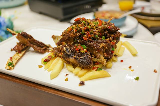 羊排结合采用当地有名的剁椒,烤肉搭配辣椒的香味,吃起来超过瘾。