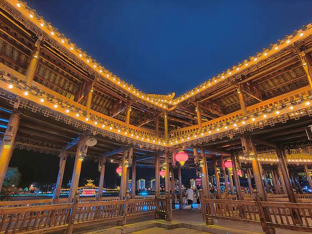 桥的全部桥身全部采用杉木搭建,卯眼连接,所以整个大桥没有一根铁钉,这也算是我国古代工匠最好的技艺体现。