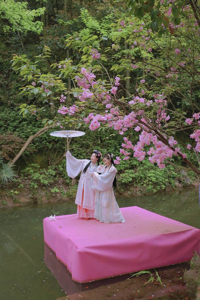 因为刚好是节假日,所以景区里有好多身穿汉服的漂亮小姐姐正在借春日之景拍照。