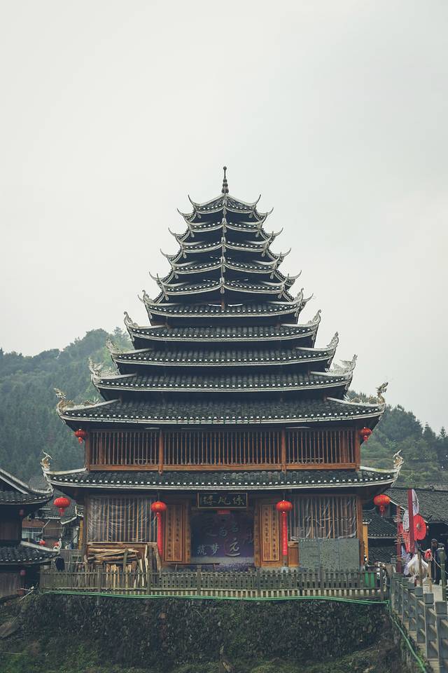 寨子中最富有特色的建筑必然是鼓楼,据说每逢重大集会或是节日,寨子里的村民便会聚集于此,村子里共有头寨、尾寨、盘寨、新寨四个寨子,故而也有四个不同的鼓楼