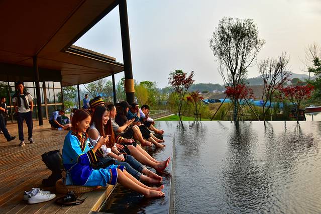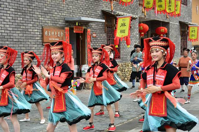 景区设置了一个《寻梦雅溪》的实景演出,可以看到瑶族妹妹的瑶族花棍舞,小伙子们的精彩舞龙,青春笑容绽放,无不叫人身临其境,穿越回盛唐时光。