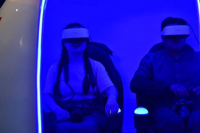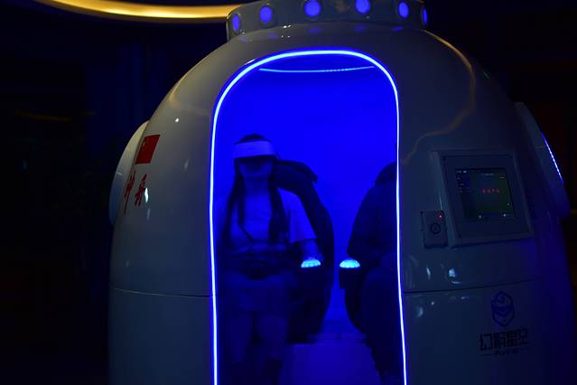 蔚蓝星空科技馆,这是我比较喜欢的地方,我太喜欢VR游戏了,这里就有神舟一号太空舱,和其他几款VR体验设备,我就玩了一个真实过山车,坐在鸡蛋形的舱里面,虽然实际起伏不大,但在我眼睛看到的画面,我已经是上天入海,几分钟的时间真是晕的不得了,虽然有点害怕,但是还是想玩,而且我还想把各种各样的VR游戏都体验一下,比如越野车、穿隧道、大摆锤,大摆锤之前也玩过,真的很像真实的大摆锤,如果手边没有支撑的话,会翻到地上的,因为人眼看到的东西,身体会不自觉的调整平衡,还有在海底世界看到鲨鱼会大呼小叫,哈哈哈,我真喜欢这些游戏,因为感觉real 真实了。
