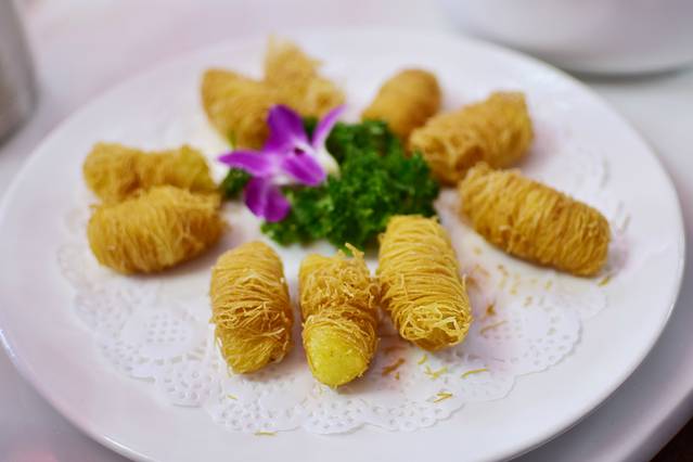 榴莲酥,香香的,外面焦焦的是粉丝,里面是热热的榴莲肉。