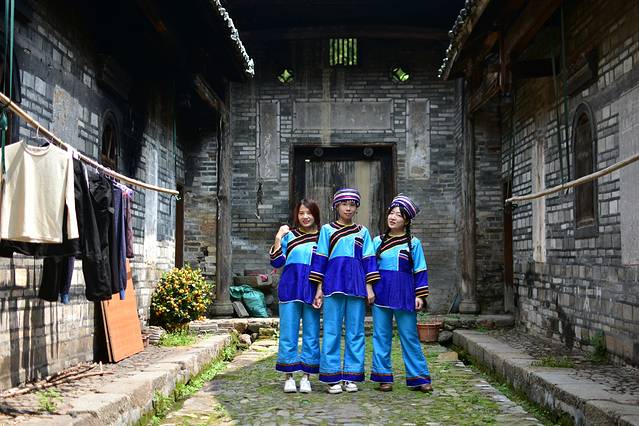 我和小伙伴们在雅溪古村的老房子里,大家拍了一个合照,身着瑶族的服装,更让我们真切感受瑶族的生活吧。