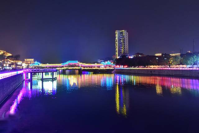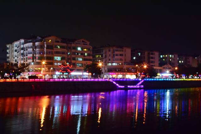 解放桥下流淌的是母亲河桃江,傍晚时分,两岸灯火璀璨,把水面上倒映出一道道的彩虹。沿着桃江江边行走,一边欣赏灯光夜景,这个步散得可真惬意,当然作为一个爱拍照的旅行者,总是一路记录着我眼中的美景。全南的夜景真的不错哟,朴树在《平凡之路》唱到:我曾跨过山和大海,也穿过人山人海……一首多么感性的歌!