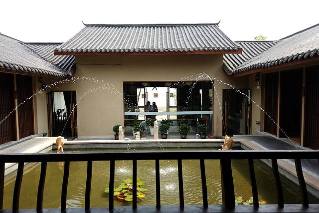 聚贤庄内部,睡莲喷水鱼池,有点小情调
