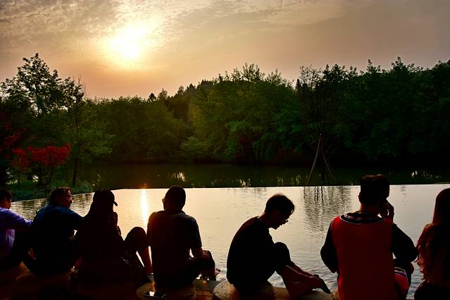 和小伙伴来到这儿,看了一个唯美的夕阳,喝了杯茶,泡了个脚,这温泉水可真烫呀,真是一个舒爽,走了大半天天龙山的劳累,全都一扫而光,要不是时间关系,真想坐下来好好的泡一个温泉。这个泡温泉的事,就留着下一次吧,反正广州自驾到全南也就两个半小时,过几个月就可以第2次走起了,冬天泡温泉更惬意。